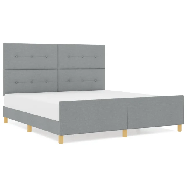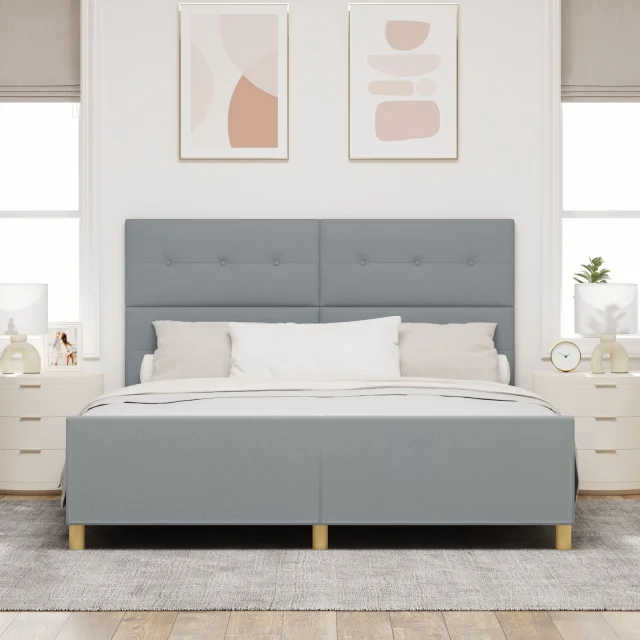 Ta svetlo siva tkaninska posteljni okvir prinese sodoben pridih v tvojo spalno oazo. Zasnovan je, da ustvari mirno in vabljivo vzdušje, z elegantnimi linijami in udobnim naslonjalom, ki bosta obogatila tvoj prostor ter ti pomagala pri kvalitetnem spancu.