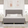 Ta taupe tkaninski posteljni okvir združuje stil in funkcionalnost, kar ga dela čudovito osrednjo točko za vsako moderno spalnico. Zgrajen, da sprejme dva, ponuja dovolj prostora za dober nočni spanec, njegov eleganten videz pa doda lepoto vaši sobi.