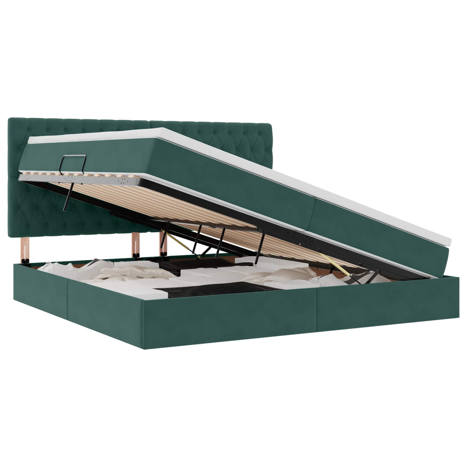 • Visokokakovostni materiali: Premium žamet nudi razkošen občutek in daljšo življenjsko dobo. Stabilna kovinska konstrukcija omogoča dolgo uporabo, medtem ko pena in žepne vzmeti v vzmetnici zagotavljajo mehkobo in zanesljivo podporo za kakovosten spanec.