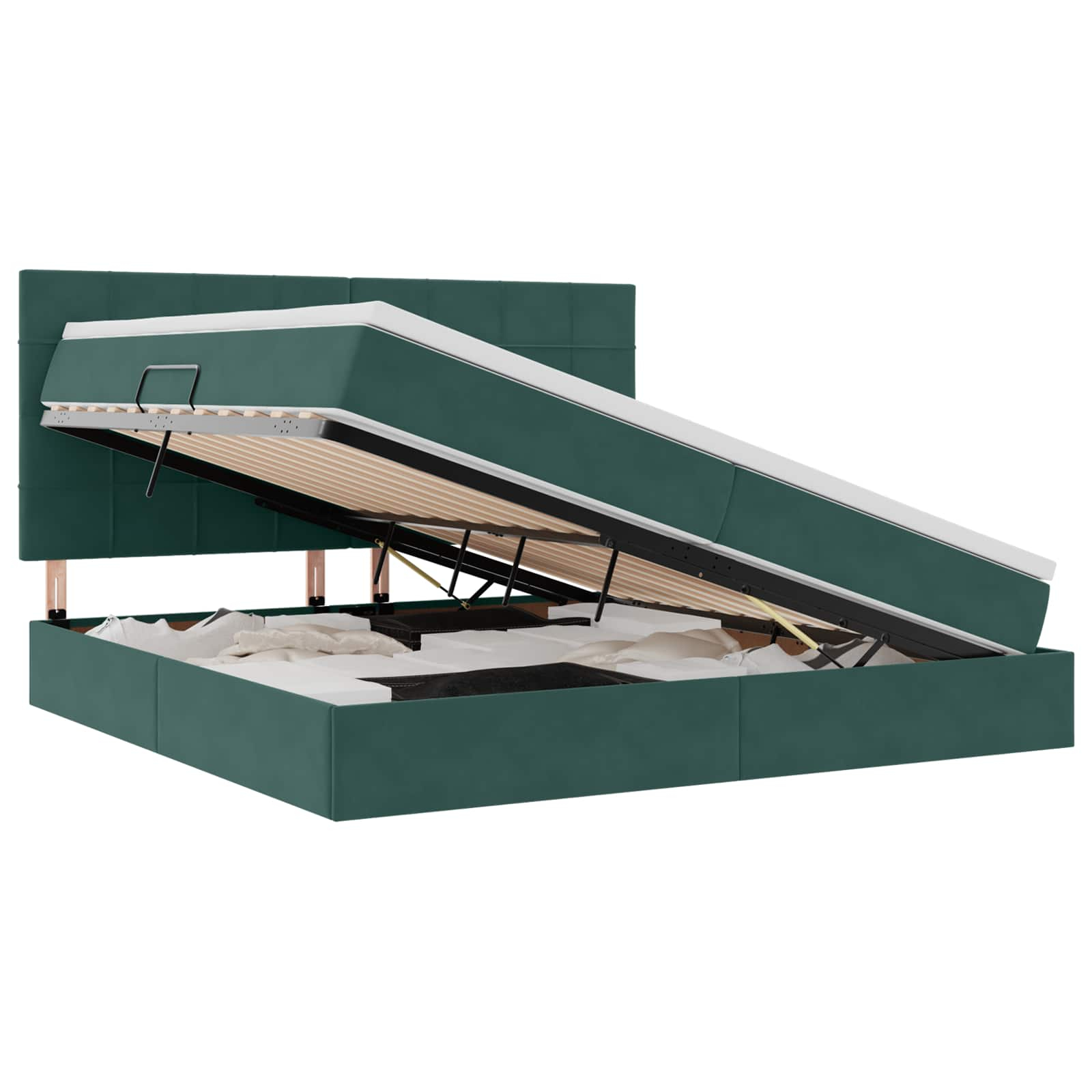 • Visokokakovostni materiali: Premium žamet nudi razkošen občutek in daljšo življenjsko dobo. Stabilna kovinska konstrukcija omogoča dolgo uporabo, medtem ko pena in žepne vzmeti v vzmetnici zagotavljajo mehkobo in zanesljivo podporo za kakovosten spanec.