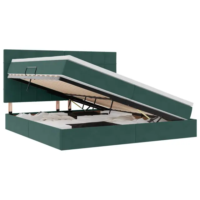 Ta moderna postelja za shranjevanje z vzmetnico je izvrsten primer sloga in funkcionalnosti. Z lahkoto se prilagaja vsakemu spalnemu prostoru. Čiste linije in eleganten profil dodajo moderno in minimalistično privlačnost. Razkošna žametna prevleka doda pridih sophistication, medtem ko inovativne rešitve za shranjevanje delajo to posteljo praktično izbiro za tiste, ki potrebujejo več prostora. Zasnovana je za udobje in priročnost ter ustvarja mirno oazo za počitek.