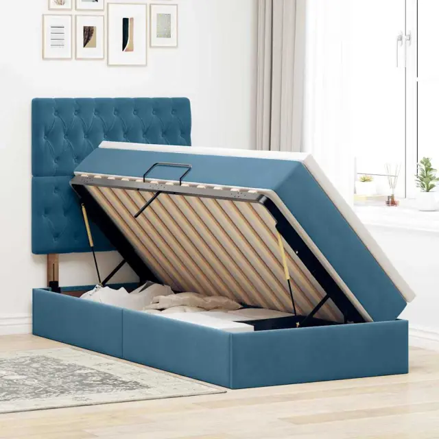 • Obilno shranjevanje pod posteljo: Postelja ima hidravlično dvigalo, ki ponuja ogromno prostora pod posteljo. Super je za organizacijo posteljnine, sezonskih oblačil ali raznih stvari, kar omogoča enostavno in priročno shranjevanje brez kompromisov pri estetiki.