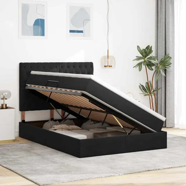 • Obilno shranjevanje pod posteljo: Postelja ima hidravlično dvigalo, ki ponuja ogromno prostora pod posteljo. Super je za organizacijo posteljnine, sezonskih oblačil ali raznih stvari, kar omogoča enostavno in priročno shranjevanje brez kompromisov pri estetiki.