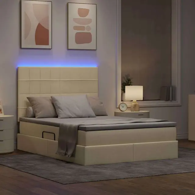 • Vse komponente: Postelja je opremljena s srednje trdno vzmetnico, ki nudi odlično podporo za različne spalne pozicije. Mehka poliester obloga na naslonu za glavo prinaša dodatno udobje. Vgrajena LED osvetlitev daje posebno vzdušje, kar jo dela unikaten dodatek v spalnico.