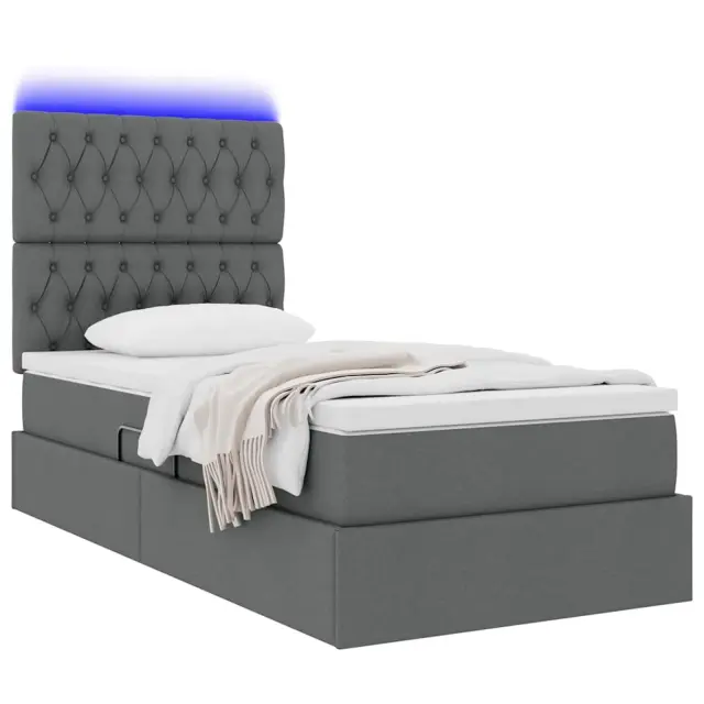 • Vse komponente: Postelja je opremljena s srednje trdno vzmetnico, ki nudi odlično podporo za različne spalne pozicije. Mehka poliester obloga na naslonu za glavo prinaša dodatno udobje. Vgrajena LED osvetlitev daje posebno vzdušje, kar jo dela unikaten dodatek v spalnico.