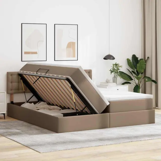 Ta postelja za shranjevanje z vzmetnico je elegantna rešitev za sodobne bivalne prostore, kjer se stil sreča s praktičnostjo. Zasnovana z minimalističnim pristopom, se zlahka vklopi v sodobno estetiko spalnic. Njena vsestranska narava je odlična za tiste, ki želijo optimizirati prostor, ne da bi žrtvovali stil, saj ponuja funkcionalnost z diskretnim prostorom pod posteljo. Umetno usnjen oblazinjenje dodaja luksuzen pridih in ustvarja središče za sprostitev.