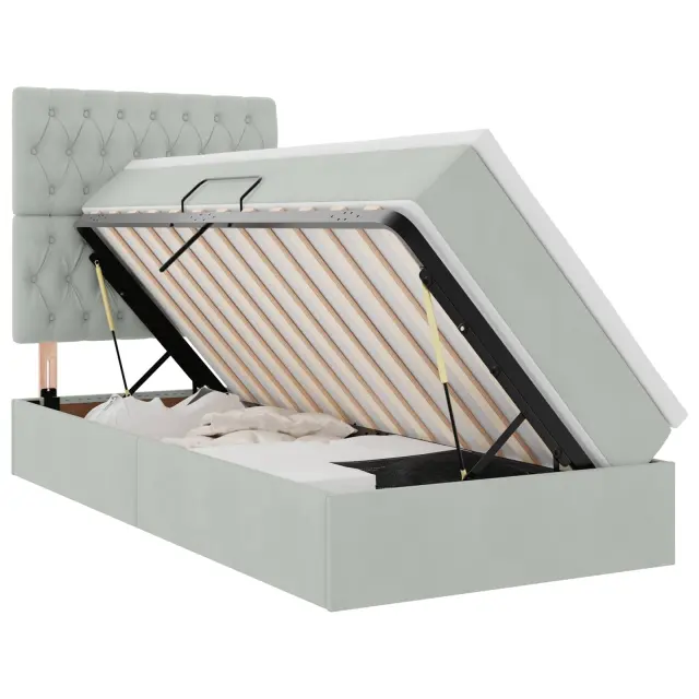 • Pametne rešitve za shranjevanje: Postelja ima hidravlični mehanizem, ki zagotavlja veliko prostora za shranjevanje pod njo. Ta funkcija optimizira prostor v sobi in ohranja stvari organizirane, idealno za manjše prostore.