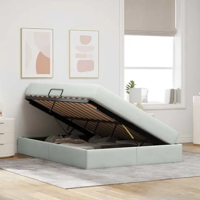 • Vzdrževanje: Da ohranite luksuzni videz žameta, redno sesajte. Natančno čiščenje madežev s blagim sredstvom za tkanine je priporočljivo. Občasno preverjajte hidravlični dvig za gladko delovanje, kar zagotavlja dolgo življenjsko dobo in vašo posteljo v brezhibnem stanju.