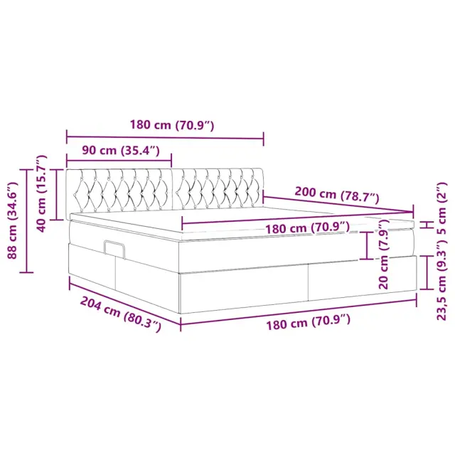 • Poliester na vzglavju in vzmetnici: Vzglavje in vzmetnica vključujeta poliester, material znan po svoji odpornosti. Srednja trdota vzmetnice zadostuje različnim spalnim potrebam in nudi podporo ter udobje za mirne noči, ne glede na to, ali spite na hrbtu, boku ali trebuhu.