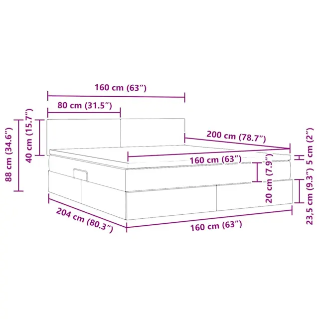• Poliester na vzglavju in vzmetnici: Vzglavje in vzmetnica vključujeta poliester, material znan po svoji odpornosti. Srednja trdota vzmetnice zadostuje različnim spalnim potrebam in nudi podporo ter udobje za mirne noči, ne glede na to, ali spite na hrbtu, boku ali trebuhu.