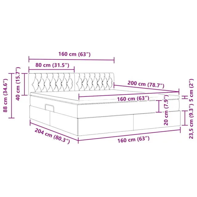 • Poliester na vzglavju in vzmetnici: Vzglavje in vzmetnica vključujeta poliester, material znan po svoji odpornosti. Srednja trdota vzmetnice zadostuje različnim spalnim potrebam in nudi podporo ter udobje za mirne noči, ne glede na to, ali spite na hrbtu, boku ali trebuhu.