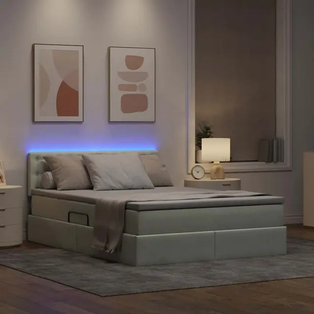 Ta postelja za shranjevanje z LED osvetlitvijo ima moderen dizajn z elegantno žametno površino, ki prinaša pridih sofisticiranosti v tvojo spalnico. Njena pravokotna oblika se brez težav prilega različnim postavitvam in dopolnjuje sodoben dekor. Opremljena s hidravličnim sistemom, ponuja obsežen prostor za shranjevanje, kar je idealno za tiste, ki imajo omejen prostor. Uživaj v prijetnem ambientu, ki ga ustvarjajo energetsko učinkoviti LED trakovi.