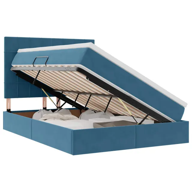 • Obilno shranjevanje pod posteljo: Postelja ima hidravlično dvigalo, ki ponuja ogromno prostora pod posteljo. Super je za organizacijo posteljnine, sezonskih oblačil ali raznih stvari, kar omogoča enostavno in priročno shranjevanje brez kompromisov pri estetiki.