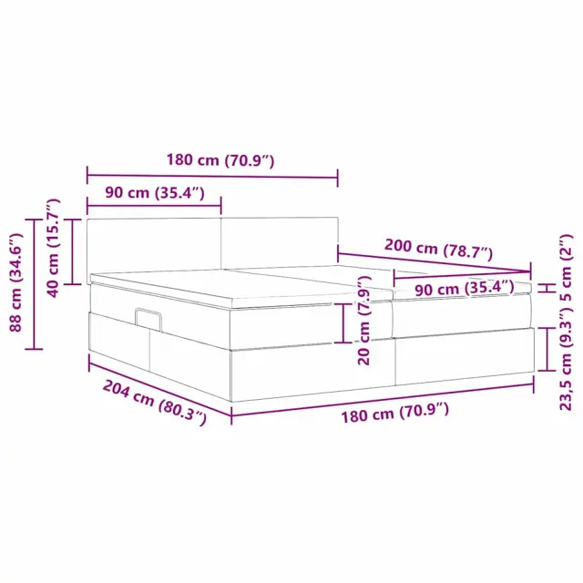 • Splošne dimenzije: 180 x 203 x 88 cm (D x Š x V)
