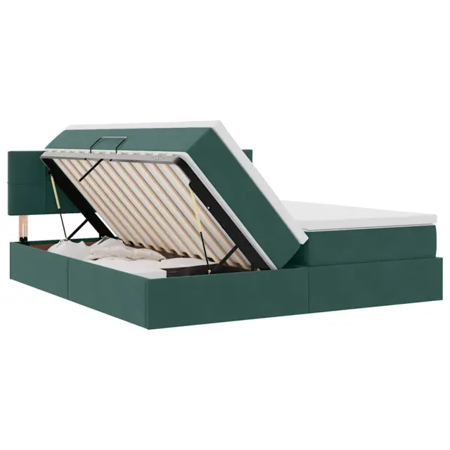 vidaXL Postelja z LED lučmi Temno zelena 180 x 200 cm Žamet