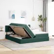 vidaXL Postelja z LED lučmi Temno zelena 200 x 200 cm Žamet