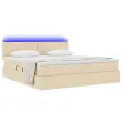 vidaXL Postelja z LED lučmi z vzglavjem Krema 180 x 200 cm blago