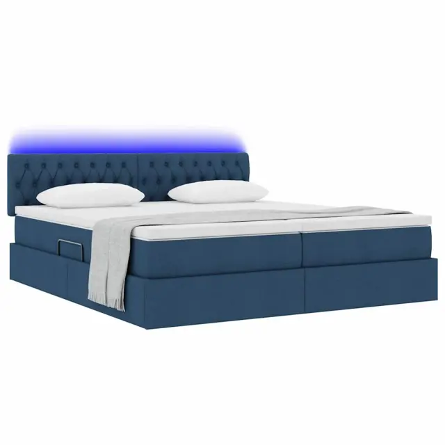 vidaXL Postelja z LED lučmi z vzglavjem Modra 180 x 200 cm blago