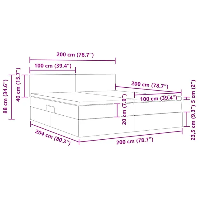 • Splošne dimenzije: 204 x 200 x 88 cm (D x Š x V)
