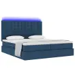vidaXL Postelja z LED lučmi z vzglavjem Modra 200 x 200 cm blago