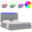 vidaXL Postelja z LED lučmi z vzglavjem Svetlo siva 180 x 200 cm blago