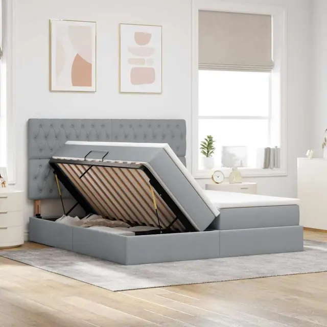 • Hidravlično dviganje shranjevanja: Postelja ima hidravlični mehanizem, ki omogoča enostaven dostop do velikega prostora za shranjevanje pod posteljo. Dvig zagotavlja udobno shranjevanje in iskanje stvari, kar ohranja spalnico urejeno in brez neredov.