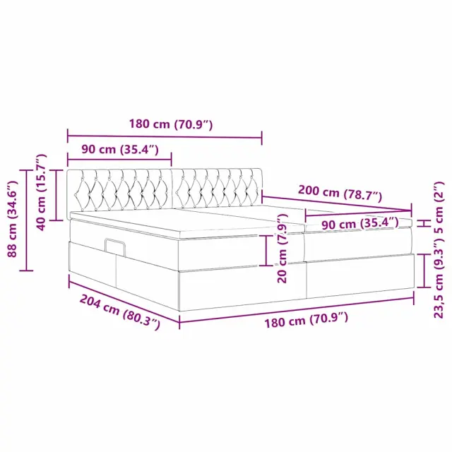 • Splošne dimenzije: 204 x 180 x 88 cm (D x Š x V)