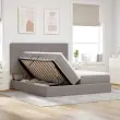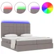 vidaXL Postelja z LED lučmi z vzglavjem Taupe 200 x 200 cm blago