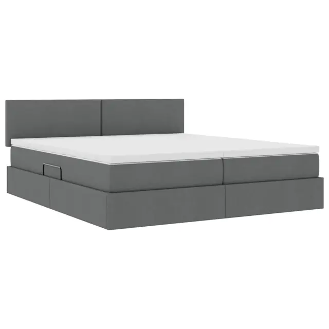 vidaXL Postelja z LED lučmi z vzglavjem Temno siva 200 x 200 cm blago