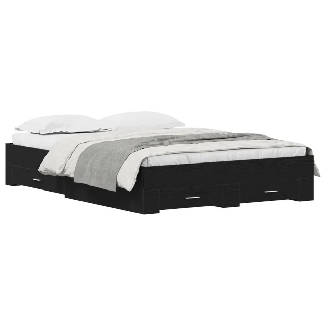 vidaXL Postelja z predali Črni hrast 135x190 cm Izdelano iz vezanega lesa