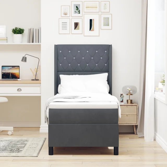vidaXL Postelja z vzmetjo in blazino & LED Temno siva 80x200 cm Žamet