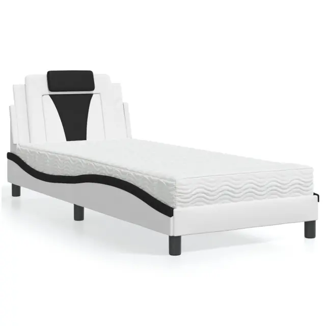 S to posteljo z vzmetnico si zagotovite bolj miren spanec! Je prijeten dodatek za vsako spalnico. Trpežno umetno usnje: Vrhunsko umetno usnje je zelo vzdržljiv material. Je odporno na madeže, zato ga lahko preprosto čistite z vlažno krpo. Gladka površina mu prav tako daje razkošen videz in lepoto pravega usnja. Letvice iz vezanega lesa: Letvice iz vezanega lesa omogočajo dobro porazdelitev teže in zagotavljajo, da vzmetnica ostane na mestu ob vsakem zasuku in obračanju med spanjem. Odlična podpora: Vzglavna stranica je napolnjena s peno za izjemno mehkobo in optimalno udobje ter zagotavlja odlično podporo hrbtu, ko sedite v postelji in berete ali gledate televizijo. Vzmetnica iz pene: Za optimalno udobje je ta triplastna vzmetnica iz tkanine napolnjena z 22D PU peno. Pomaga lajšati utrujenost in spodbuja krvni obtok ter zagotavlja popolno sprostitev in kakovosten spanec. Poleg tega je vzmetnica na voljo v trdotah H2 in H3, tako da jo lahko preprosto obrnete in izberete trdoto, ki vam najbolj ustreza. Valovita stranica: Valoviti videz posteljnega okvirja je eleganten in prefinjen. Dekorju v vašem domu dodaja sodoben in eleganten pridih ter tako postane osrednja točka spalnice.Posteljni okvir:Barva: Bela in črnaMaterial: Umetno usnje (75 % polivinilklorid, 5 % bombaž, 20 % poliester), kovina, trdna borovina, vezan les, inženirski lesCelotne dimenzije: 208 x 95 x 74,5 cm (D x Š x V)Oblazinjeno vzglavje:Barva: Bela in črnaMaterial: Umetno usnje (75 % polivinilklorid, 5 % bombaž, 20 % poliester)Material polnila: PenaDimenzije: 90 x 3 x 49 cm (D x Š x V)Vzmetnica iz pene:Barva: Bela Material prevleke: Pletenina Material polnila: 22D PU pena Trdota: H2 in H3 Celotne dimenzije: 90 x 190 x 17 cm (Š x D x D)Potrebno sestavljanje: DaPaket vsebuje:1 x Posteljni okvir1 x Oblazinjeno vzglavje1 x Vzmetnica iz pene 3208767