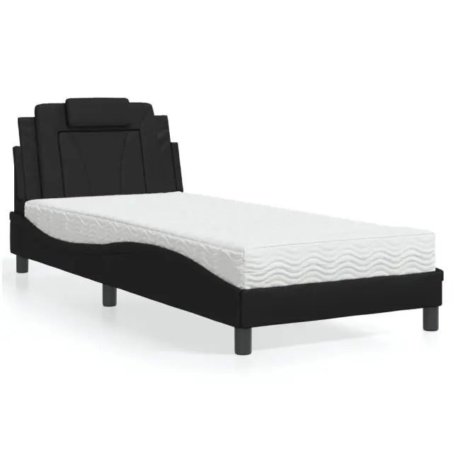 S to posteljo z vzmetnico si zagotovite bolj miren spanec! Je prijeten dodatek za vsako spalnico. Trpežno umetno usnje: Vrhunsko umetno usnje je zelo vzdržljiv material. Je odporno na madeže, zato ga lahko preprosto čistite z vlažno krpo. Gladka površina mu prav tako daje razkošen videz in lepoto pravega usnja. Letvice iz vezanega lesa: Letvice iz vezanega lesa omogočajo dobro porazdelitev teže in zagotavljajo, da vzmetnica ostane na mestu ob vsakem zasuku in obračanju med spanjem. Odlična podpora: Vzglavna stranica je napolnjena s peno za izjemno mehkobo in optimalno udobje ter zagotavlja odlično podporo hrbtu, ko sedite v postelji in berete ali gledate televizijo. Vzmetnica iz pene: Za optimalno udobje je ta triplastna vzmetnica iz tkanine napolnjena z 22D PU peno. Pomaga lajšati utrujenost in spodbuja krvni obtok ter zagotavlja popolno sprostitev in kakovosten spanec. Poleg tega je vzmetnica na voljo v trdotah H2 in H3, tako da jo lahko preprosto obrnete in izberete trdoto, ki vam najbolj ustreza. Valovita stranica: Valoviti videz posteljnega okvirja je eleganten in prefinjen. Dekorju v vašem domu dodaja sodoben in eleganten pridih ter tako postane osrednja točka spalnice.Posteljni okvir:Barva: ČrnaMaterial: Umetno usnje (75 % polivinilklorid, 5 % bombaž, 20 % poliester), kovina, trdna borovina, vezan les, inženirski lesCelotne dimenzije: 208 x 95 x 74,5 cm (D x Š x V)Oblazinjeno vzglavje:Barva: ČrnaMaterial: Umetno usnje (75 % polivinilklorid, 5 % bombaž, 20 % poliester)Material polnila: PenaDimenzije: 90 x 3 x 49 cm (D x Š x V)Vzmetnica iz pene:Barva: Bela Material prevleke: Pletenina Material polnila: 22D PU pena Trdota: H2 in H3 Celotne dimenzije: 90 x 190 x 17 cm (Š x D x D)Potrebno sestavljanje: DaPaket vsebuje:1 x Posteljni okvir1 x Oblazinjeno vzglavje1 x Vzmetnica iz pene 3208761
