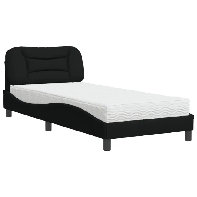 S to posteljo z vzmetnico si zagotovite bolj miren spanec! Je prijeten dodatek za vsako spalnico. Trpežno blago: Blago zagotavlja preprost in čist videz, poleg tega pa je zračno in trpežno.Letvice iz vezanega lesa: Letvice iz vezanega lesa omogočajo dobro porazdelitev teže in zagotavljajo, da vzmetnica ostane na mestu ob vsakem zasuku in obračanju med spanjem.Udobna opora: To vzglavje za posteljo vam zagotavlja odlično oporo za hrbet, ko sedite na postelji in berete ali gledate filme.Vzmetnica iz pene: Za optimalno udobje je ta triplastna vzmetnica iz tkanine napolnjena z 22D PU peno. Pomaga lajšati utrujenost in spodbuja krvni obtok ter zagotavlja popolno sprostitev in kakovosten spanec. Poleg tega je vzmetnica na voljo v trdotah H2 in H3, tako da jo lahko preprosto obrnete in izberete trdoto, ki vam najbolj ustreza.Valovita stranica: Valoviti videz posteljnega okvirja je eleganten in prefinjen. Dekorju v vašem domu dodaja sodoben in eleganten pridih ter tako postane osrednja točka spalnice.Posteljni okvir:Barva: ČrnaMaterial: Tkanina (100 % poliester), kovina, trdna borovina, vezan les, inženirski lesCelotne dimenzije: 208 x 95 x 74,5 cm (D x Š x V)Oblazinjeno vzglavje:Barva: ČrnaMaterial: Blago (100 % poliester)Material polnila: PP vlaknaDimenzije: 100 x 15 x 48 cm (D x Š x V)Vzmetnica iz pene:Barva: Bela Material prevleke: Pletenina Material polnila: 22D PU pena Trdota: H2 in H3 Celotne dimenzije: 90 x 190 x 17 cm (Š x D x D)Potrebno sestavljanje: DaPaket vsebuje:1 x Posteljni okvir1 x Oblazinjeno vzglavje1 x Vzmetnica iz pene 3208501