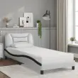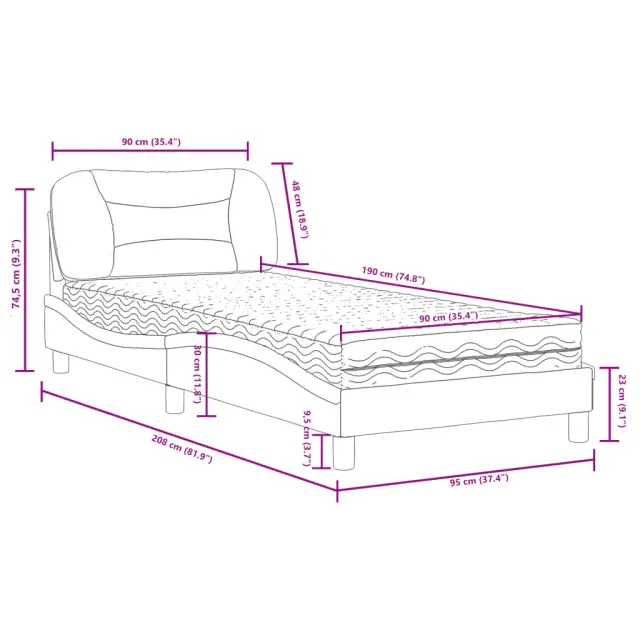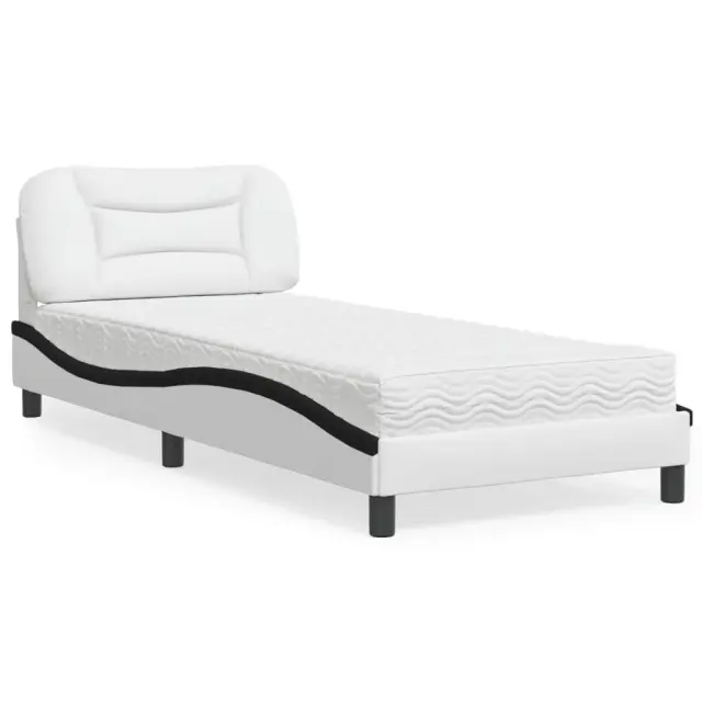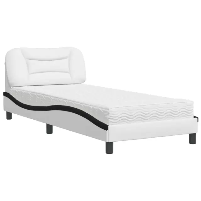 S to posteljo z vzmetnico si zagotovite bolj miren spanec! Je prijeten dodatek za vsako spalnico. Trpežno umetno usnje: Vrhunsko umetno usnje je zelo vzdržljiv material. Je odporno na madeže, zato ga lahko preprosto čistite z vlažno krpo. Gladka površina mu prav tako daje razkošen videz in lepoto pravega usnja.Letvice iz vezanega lesa: Letvice iz vezanega lesa omogočajo dobro porazdelitev teže in zagotavljajo, da vzmetnica ostane na mestu ob vsakem zasuku in obračanju med spanjem.Udobna opora: To vzglavje za posteljo vam zagotavlja odlično oporo za hrbet, ko sedite na postelji in berete ali gledate filme.Vzmetnica iz pene: Za optimalno udobje je ta triplastna vzmetnica iz tkanine napolnjena z 22D PU peno. Pomaga lajšati utrujenost in spodbuja krvni obtok ter zagotavlja popolno sprostitev in kakovosten spanec. Poleg tega je vzmetnica na voljo v trdotah H2 in H3, tako da jo lahko preprosto obrnete in izberete trdoto, ki vam najbolj ustreza.Valovita stranica: Valoviti videz posteljnega okvirja je eleganten in prefinjen. Dekorju v vašem domu dodaja sodoben in eleganten pridih ter tako postane osrednja točka spalnice.Posteljni okvir:Barva: Bela in črnaMaterial: Umetno usnje (75 % polivinilklorid, 5 % bombaž, 20 % poliester), kovina, trdna borovina, vezan les, inženirski lesCelotne dimenzije: 208 x 95 x 74,5 cm (D x Š x V)Oblazinjeno vzglavje:Barva: BelaMaterial: Umetno usnje (75 % polivinilklorid, 5 % bombaž, 20 % poliester)Material polnila: PP vlaknaDimenzije: 100 x 15 x 48 cm (D x Š x V)Vzmetnica iz pene:Barva: Bela Material prevleke: Pletenina Material polnila: 22D PU pena Trdota: H2 in H3 Celotne dimenzije: 90 x 190 x 17 cm (Š x D x D)Potrebno sestavljanje: DaPaket vsebuje:1 x Posteljni okvir1 x Oblazinjeno vzglavje1 x Vzmetnica iz pene 3208695