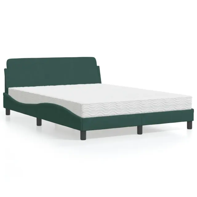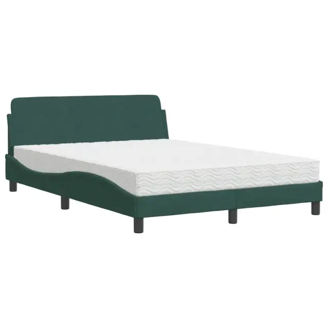 S to posteljo z vzmetnico si zagotovite bolj miren spanec! Je prijeten dodatek za vsako spalnico. Mehak žamet: Žamet je mehka in udobna tkanina, ki je prijetna do kože.Letvice iz vezanega lesa: Letvice iz vezanega lesa omogočajo dobro porazdelitev teže in zagotavljajo, da vzmetnica ostane na mestu ob vsakem zasuku in obračanju med spanjem.Udobna opora: To vzglavje za posteljo vam zagotavlja odlično oporo za hrbet, ko sedite na postelji in berete ali gledate filme.Vzmetnica iz pene: Za optimalno udobje je ta triplastna vzmetnica iz tkanine napolnjena z 22D PU peno. Pomaga lajšati utrujenost in spodbuja krvni obtok ter zagotavlja popolno sprostitev in kakovosten spanec. Poleg tega je vzmetnica na voljo v trdotah H2 in H3, tako da jo lahko preprosto obrnete in izberete trdoto, ki vam najbolj ustreza.Valovita stranica: Valoviti videz posteljnega okvirja je eleganten in prefinjen. Dekorju v vašem domu dodaja sodoben in eleganten pridih ter tako postane osrednja točka spalnice.Posteljni okvir:Barva: Temno zelenaMaterial: Žamet (100 % poliester), kovina, trdna borovina, vezan lesCelotne dimenzije: 218 x 125 x 74,5 cm (D x Š x V)Vzmetnica iz pene:Barva: Bela Material prevleke: Pletenina Material polnila: 22D PU pena Trdota: H2 in H3 Celotne dimenzije: 120 x 200 x 17 cm (Š x D x D)Potrebno sestavljanje: DaPaket vsebuje:1 x Posteljni okvir1 x Vzmetnica iz pene 3208374