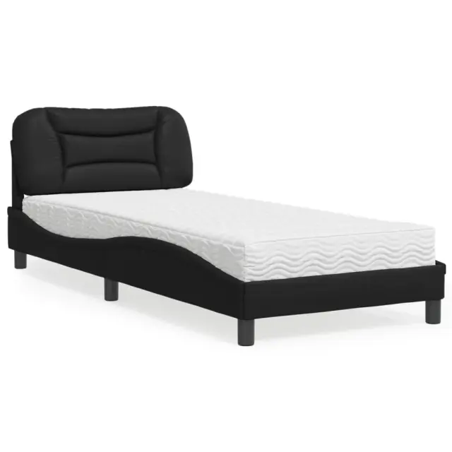 S to posteljo z vzmetnico si zagotovite bolj miren spanec! Je prijeten dodatek za vsako spalnico. Trpežno umetno usnje: Vrhunsko umetno usnje je zelo vzdržljiv material. Je odporno na madeže, zato ga lahko preprosto čistite z vlažno krpo. Gladka površina mu prav tako daje razkošen videz in lepoto pravega usnja.Letvice iz vezanega lesa: Letvice iz vezanega lesa omogočajo dobro porazdelitev teže in zagotavljajo, da vzmetnica ostane na mestu ob vsakem zasuku in obračanju med spanjem.Udobna opora: To vzglavje za posteljo vam zagotavlja odlično oporo za hrbet, ko sedite na postelji in berete ali gledate filme.Vzmetnica iz pene: Za optimalno udobje je ta triplastna vzmetnica iz tkanine napolnjena z 22D PU peno. Pomaga lajšati utrujenost in spodbuja krvni obtok ter zagotavlja popolno sprostitev in kakovosten spanec. Poleg tega je vzmetnica na voljo v trdotah H2 in H3, tako da jo lahko preprosto obrnete in izberete trdoto, ki vam najbolj ustreza.Valovita stranica: Valoviti videz posteljnega okvirja je eleganten in prefinjen. Dekorju v vašem domu dodaja sodoben in eleganten pridih ter tako postane osrednja točka spalnice.Posteljni okvir:Barva: ČrnaMaterial: Umetno usnje (75 % polivinilklorid, 5 % bombaž, 20 % poliester), kovina, trdna borovina, vezan les, inženirski lesCelotne dimenzije: 218 x 95 x 74,5 cm (D x Š x V)Oblazinjeno vzglavje:Barva: ČrnaMaterial: Umetno usnje (75 % polivinilklorid, 5 % bombaž, 20 % poliester)Material polnila: PP vlaknaDimenzije: 100 x 15 x 48 cm (D x Š x V)Vzmetnica iz pene:Barva: Bela Material prevleke: Pletenina Material polnila: 22D PU pena Trdota: H2 in H3 Celotne dimenzije: 90 x 200 x 17 cm (Š x D x D)Potrebno sestavljanje: DaPaket vsebuje:1 x Posteljni okvir1 x Oblazinjeno vzglavje1 x Vzmetnica iz pene 3208696