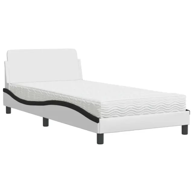 S to posteljo z vzmetnico si zagotovite bolj miren spanec! Je prijeten dodatek za vsako spalnico. Trpežno umetno usnje: Vrhunsko umetno usnje je zelo vzdržljiv material. Je odporno na madeže, zato ga lahko preprosto čistite z vlažno krpo. Gladka površina mu prav tako daje razkošen videz in lepoto pravega usnja.Letvice iz vezanega lesa: Letvice iz vezanega lesa omogočajo dobro porazdelitev teže in zagotavljajo, da vzmetnica ostane na mestu ob vsakem zasuku in obračanju med spanjem.Udobna opora: To vzglavje za posteljo vam zagotavlja odlično oporo za hrbet, ko sedite na postelji in berete ali gledate filme.Vzmetnica iz pene: Za optimalno udobje je ta triplastna vzmetnica iz tkanine napolnjena z 22D PU peno. Pomaga lajšati utrujenost in spodbuja krvni obtok ter zagotavlja popolno sprostitev in kakovosten spanec. Poleg tega je vzmetnica na voljo v trdotah H2 in H3, tako da jo lahko preprosto obrnete in izberete trdoto, ki vam najbolj ustreza.Valovita stranica: Valoviti videz posteljnega okvirja je eleganten in prefinjen. Dekorju v vašem domu dodaja sodoben in eleganten pridih ter tako postane osrednja točka spalnice.Posteljni okvir:Barva: Bela in črnaMaterial: Umetno usnje (75 % polivinilklorid, 5 % bombaž, 20 % poliester), kovina, trdna borovina, vezan les, inženirski lesCelotne dimenzije: 218 x 105 x 74,5 cm (D x Š x V)Vzmetnica iz pene:Barva: Bela Material prevleke: Pletenina Material polnila: 22D PU pena Trdota: H2 in H3 Celotne dimenzije: 100 x 200 x 17 cm (Š x D x D)Potrebno sestavljanje: DaPaket vsebuje:1 x Posteljni okvir1 x Vzmetnica iz pene 3208363