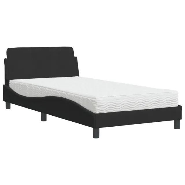 S to posteljo z vzmetnico si zagotovite bolj miren spanec! Je prijeten dodatek za vsako spalnico. Mehak žamet: Žamet je mehka in udobna tkanina, ki je prijetna do kože.Letvice iz vezanega lesa: Letvice iz vezanega lesa omogočajo dobro porazdelitev teže in zagotavljajo, da vzmetnica ostane na mestu ob vsakem zasuku in obračanju med spanjem.Udobna opora: To vzglavje za posteljo vam zagotavlja odlično oporo za hrbet, ko sedite na postelji in berete ali gledate filme.Vzmetnica iz pene: Za optimalno udobje je ta triplastna vzmetnica iz tkanine napolnjena z 22D PU peno. Pomaga lajšati utrujenost in spodbuja krvni obtok ter zagotavlja popolno sprostitev in kakovosten spanec. Poleg tega je vzmetnica na voljo v trdotah H2 in H3, tako da jo lahko preprosto obrnete in izberete trdoto, ki vam najbolj ustreza.Valovita stranica: Valoviti videz posteljnega okvirja je eleganten in prefinjen. Dekorju v vašem domu dodaja sodoben in eleganten pridih ter tako postane osrednja točka spalnice.Posteljni okvir:Barva: ČrnaMaterial: Žamet (100 % poliester), kovina, trdna borovina, vezan les, inženirski lesCelotne dimenzije: 218 x 105 x 74,5 cm (D x Š x V)Vzmetnica iz pene:Barva: Bela Material prevleke: Pletenina Material polnila: 22D PU pena Trdota: H2 in H3 Celotne dimenzije: 100 x 200 x 17 cm (Š x D x D)Potrebno sestavljanje: DaPaket vsebuje:1 x Posteljni okvir1 x Vzmetnica iz pene 3208353