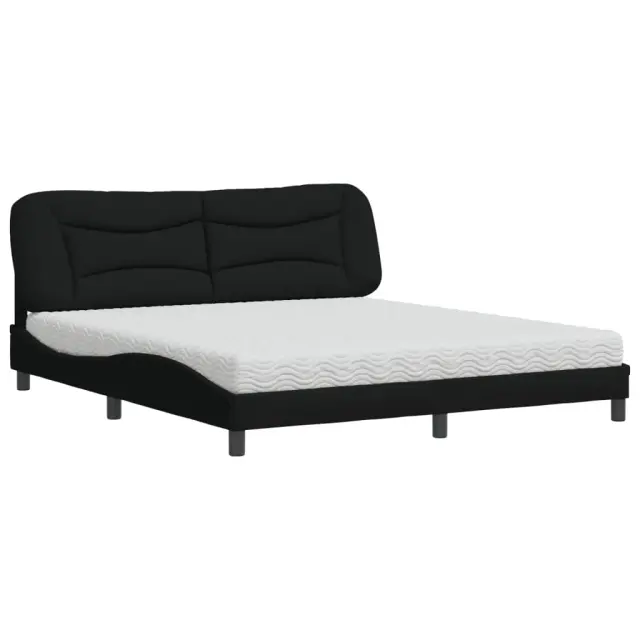 S to posteljo z vzmetnico si zagotovite bolj miren spanec! Je prijeten dodatek za vsako spalnico. Trpežno blago: Blago zagotavlja preprost in čist videz, poleg tega pa je zračno in trpežno.Letvice iz vezanega lesa: Letvice iz vezanega lesa omogočajo dobro porazdelitev teže in zagotavljajo, da vzmetnica ostane na mestu ob vsakem zasuku in obračanju med spanjem.Udobna opora: To vzglavje za posteljo vam zagotavlja odlično oporo za hrbet, ko sedite na postelji in berete ali gledate filme.Vzmetnica iz pene: Za optimalno udobje je ta triplastna vzmetnica iz tkanine napolnjena z 22D PU peno. Pomaga lajšati utrujenost in spodbuja krvni obtok ter zagotavlja popolno sprostitev in kakovosten spanec. Poleg tega je vzmetnica na voljo v trdotah H2 in H3, tako da jo lahko preprosto obrnete in izberete trdoto, ki vam najbolj ustreza.Valovita stranica: Valoviti videz posteljnega okvirja je eleganten in prefinjen. Dekorju v vašem domu dodaja sodoben in eleganten pridih ter tako postane osrednja točka spalnice.Posteljni okvir:Barva: ČrnaMaterial: Tkanina (100 % poliester), kovina, trdna borovina, vezan lesCelotne dimenzije: 218 x 185 x 74,5 cm (D x Š x V)Oblazinjeno vzglavje:Barva: ČrnaMaterial: Blago (100 % poliester)Material polnila: PP vlaknaDimenzije: 190 x 15 x 48 cm (D x Š x V)Vzmetnica iz pene:Barva: Bela Material prevleke: Pletenina Material polnila: 22D PU pena Trdota: H2 in H3 Celotne dimenzije: 180 x 200 x 17 cm (Š x D x D)Potrebno sestavljanje: DaPaket vsebuje:1 x Posteljni okvir1 x Oblazinjeno vzglavje1 x Vzmetnica iz pene 3208550