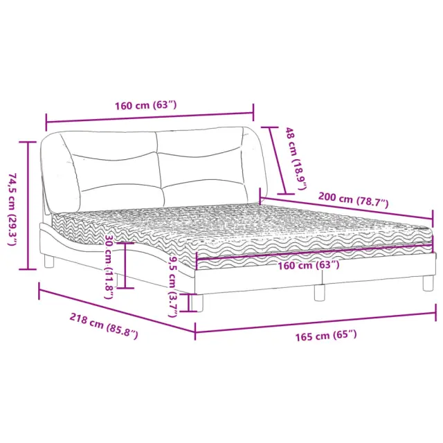 S to posteljo z vzmetnico si zagotovite bolj miren spanec! Je prijeten dodatek za vsako spalnico. Trpežno blago: Blago zagotavlja preprost in čist videz, poleg tega pa je zračno in trpežno.Letvice iz vezanega lesa: Letvice iz vezanega lesa omogočajo dobro porazdelitev teže in zagotavljajo, da vzmetnica ostane na mestu ob vsakem zasuku in obračanju med spanjem.Udobna opora: To vzglavje za posteljo vam zagotavlja odlično oporo za hrbet, ko sedite na postelji in berete ali gledate filme.Vzmetnica iz pene: Za optimalno udobje je ta triplastna vzmetnica iz tkanine napolnjena z 22D PU peno. Pomaga lajšati utrujenost in spodbuja krvni obtok ter zagotavlja popolno sprostitev in kakovosten spanec. Poleg tega je vzmetnica na voljo v trdotah H2 in H3, tako da jo lahko preprosto obrnete in izberete trdoto, ki vam najbolj ustreza.Valovita stranica: Valoviti videz posteljnega okvirja je eleganten in prefinjen. Dekorju v vašem domu dodaja sodoben in eleganten pridih ter tako postane osrednja točka spalnice.Posteljni okvir:Barva: TaupeMaterial: Tkanina (100 % poliester), kovina, trdna borovina, vezan lesCelotne dimenzije: 218 x 165 x 74,5 cm (D x Š x V)Oblazinjeno vzglavje:Barva: TaupeMaterial: Blago (100 % poliester)Material polnila: PP vlaknaDimenzije: 170 x 15 x 48 cm (D x Š x V)Vzmetnica iz pene:Barva: Bela Material prevleke: Pletenina Material polnila: 22D PU pena Trdota: H2 in H3 Celotne dimenzije: 160 x 200 x 17 cm (Š x D x D)Potrebno sestavljanje: DaPaket vsebuje:1 x Posteljni okvir1 x Oblazinjeno vzglavje1 x Vzmetnica iz pene 3208545