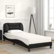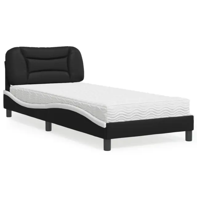 S to posteljo z vzmetnico si zagotovite bolj miren spanec! Je prijeten dodatek za vsako spalnico. Trpežno umetno usnje: Vrhunsko umetno usnje je zelo vzdržljiv material. Je odporno na madeže, zato ga lahko preprosto čistite z vlažno krpo. Gladka površina mu prav tako daje razkošen videz in lepoto pravega usnja.Letvice iz vezanega lesa: Letvice iz vezanega lesa omogočajo dobro porazdelitev teže in zagotavljajo, da vzmetnica ostane na mestu ob vsakem zasuku in obračanju med spanjem.Udobna opora: To vzglavje za posteljo vam zagotavlja odlično oporo za hrbet, ko sedite na postelji in berete ali gledate filme.Vzmetnica iz pene: Za optimalno udobje je ta triplastna vzmetnica iz tkanine napolnjena z 22D PU peno. Pomaga lajšati utrujenost in spodbuja krvni obtok ter zagotavlja popolno sprostitev in kakovosten spanec. Poleg tega je vzmetnica na voljo v trdotah H2 in H3, tako da jo lahko preprosto obrnete in izberete trdoto, ki vam najbolj ustreza.Valovita stranica: Valoviti videz posteljnega okvirja je eleganten in prefinjen. Dekorju v vašem domu dodaja sodoben in eleganten pridih ter tako postane osrednja točka spalnice.Posteljni okvir:Barva: Črna in belaMaterial: Umetno usnje (75 % polivinilklorid, 5 % bombaž, 20 % poliester), kovina, trdna borovina, vezan les, inženirski lesCelotne dimenzije: 208 x 95 x 74,5 cm (D x Š x V)Oblazinjeno vzglavje:Barva: ČrnaMaterial: Umetno usnje (75 % polivinilklorid, 5 % bombaž, 20 % poliester)Material polnila: PP vlaknaDimenzije: 100 x 15 x 48 cm (D x Š x V)Vzmetnica iz pene:Barva: Bela Material prevleke: Pletenina Material polnila: 22D PU pena Trdota: H2 in H3 Celotne dimenzije: 90 x 190 x 17 cm (Š x D x D)Potrebno sestavljanje: DaPaket vsebuje:1 x Posteljni okvir1 x Oblazinjeno vzglavje1 x Vzmetnica iz pene 3208694