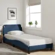 S to posteljo z vzmetnico si zagotovite bolj miren spanec! Je prijeten dodatek za vsako spalnico. Trpežno blago: Blago zagotavlja preprost in čist videz, poleg tega pa je zračno in trpežno.Letvice iz vezanega lesa: Letvice iz vezanega lesa omogočajo dobro porazdelitev teže in zagotavljajo, da vzmetnica ostane na mestu ob vsakem zasuku in obračanju med spanjem.Udobna opora: To vzglavje za posteljo vam zagotavlja odlično oporo za hrbet, ko sedite na postelji in berete ali gledate filme.Vzmetnica iz pene: Za optimalno udobje je ta triplastna vzmetnica iz tkanine napolnjena z 22D PU peno. Pomaga lajšati utrujenost in spodbuja krvni obtok ter zagotavlja popolno sprostitev in kakovosten spanec. Poleg tega je vzmetnica na voljo v trdotah H2 in H3, tako da jo lahko preprosto obrnete in izberete trdoto, ki vam najbolj ustreza.Valovita stranica: Valoviti videz posteljnega okvirja je eleganten in prefinjen. Dekorju v vašem domu dodaja sodoben in eleganten pridih ter tako postane osrednja točka spalnice.Posteljni okvir:Barva: ModraMaterial: Tkanina (100 % poliester), kovina, trdna borovina, vezan les, inženirski lesCelotne dimenzije: 218 x 85 x 74,5 cm (D x Š x V)Vzmetnica iz pene:Barva: Bela Material prevleke: Pletenina Material polnila: 22D PU pena Trdota: H2 in H3 Celotne dimenzije: 80 x 200 x 17 cm (Š x D x D)Potrebno sestavljanje: DaPaket vsebuje:1 x Posteljni okvir1 x Vzmetnica iz pene 3208290