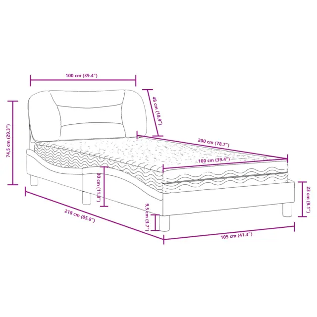 S to posteljo z vzmetnico si zagotovite bolj miren spanec! Je prijeten dodatek za vsako spalnico. Trpežno umetno usnje: Vrhunsko umetno usnje je zelo vzdržljiv material. Je odporno na madeže, zato ga lahko preprosto čistite z vlažno krpo. Gladka površina mu prav tako daje razkošen videz in lepoto pravega usnja.Letvice iz vezanega lesa: Letvice iz vezanega lesa omogočajo dobro porazdelitev teže in zagotavljajo, da vzmetnica ostane na mestu ob vsakem zasuku in obračanju med spanjem.Udobna opora: To vzglavje za posteljo vam zagotavlja odlično oporo za hrbet, ko sedite na postelji in berete ali gledate filme.Vzmetnica iz pene: Za optimalno udobje je ta triplastna vzmetnica iz tkanine napolnjena z 22D PU peno. Pomaga lajšati utrujenost in spodbuja krvni obtok ter zagotavlja popolno sprostitev in kakovosten spanec. Poleg tega je vzmetnica na voljo v trdotah H2 in H3, tako da jo lahko preprosto obrnete in izberete trdoto, ki vam najbolj ustreza.Valovita stranica: Valoviti videz posteljnega okvirja je eleganten in prefinjen. Dekorju v vašem domu dodaja sodoben in eleganten pridih ter tako postane osrednja točka spalnice.Posteljni okvir:Barva: RjavaMaterial: Umetno usnje (75 % polivinilklorid, 5 % bombaž, 20 % poliester), kovina, trdna borovina, vezan les, inženirski lesCelotne dimenzije: 218 x 105 x 74,5 cm (D x Š x V)Oblazinjeno vzglavje:Barva: RjavaMaterial: Umetno usnje (75 % polivinilklorid, 5 % bombaž, 20 % poliester)Material polnila: PP vlaknaDimenzije: 110 x 15 x 48 cm (D x Š x V)Vzmetnica iz pene:Barva: Bela Material prevleke: Pletenina Material polnila: 22D PU pena Trdota: H2 in H3 Celotne dimenzije: 100 x 200 x 17 cm (Š x D x D)Potrebno sestavljanje: DaPaket vsebuje:1 x Posteljni okvir1 x Oblazinjeno vzglavje1 x Vzmetnica iz pene 3208705