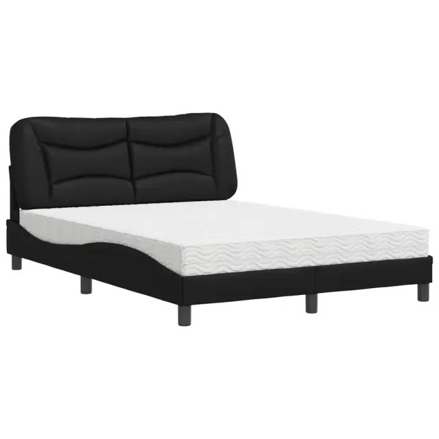 S to posteljo z vzmetnico si zagotovite bolj miren spanec! Je prijeten dodatek za vsako spalnico. Trpežno umetno usnje: Vrhunsko umetno usnje je zelo vzdržljiv material. Je odporno na madeže, zato ga lahko preprosto čistite z vlažno krpo. Gladka površina mu prav tako daje razkošen videz in lepoto pravega usnja.Letvice iz vezanega lesa: Letvice iz vezanega lesa omogočajo dobro porazdelitev teže in zagotavljajo, da vzmetnica ostane na mestu ob vsakem zasuku in obračanju med spanjem.Udobna opora: To vzglavje za posteljo vam zagotavlja odlično oporo za hrbet, ko sedite na postelji in berete ali gledate filme.Vzmetnica iz pene: Za optimalno udobje je ta triplastna vzmetnica iz tkanine napolnjena z 22D PU peno. Pomaga lajšati utrujenost in spodbuja krvni obtok ter zagotavlja popolno sprostitev in kakovosten spanec. Poleg tega je vzmetnica na voljo v trdotah H2 in H3, tako da jo lahko preprosto obrnete in izberete trdoto, ki vam najbolj ustreza.Valovita stranica: Valoviti videz posteljnega okvirja je eleganten in prefinjen. Dekorju v vašem domu dodaja sodoben in eleganten pridih ter tako postane osrednja točka spalnice.Posteljni okvir:Barva: ČrnaMaterial: Umetno usnje (75 % polivinilklorid, 5 % bombaž, 20 % poliester), kovina, trdna borovina, vezan lesCelotne dimenzije: 218 x 145 x 74,5 cm (D x Š x V)Oblazinjeno vzglavje:Barva: ČrnaMaterial: Umetno usnje (75 % polivinilklorid, 5 % bombaž, 20 % poliester)Material polnila: PP vlaknaDimenzije: 150 x 15 x 48 cm (D x Š x V)Vzmetnica iz pene:Barva: Bela Material prevleke: Pletenina Material polnila: 22D PU pena Trdota: H2 in H3 Celotne dimenzije: 140 x 200 x 17 cm (Š x D x D)Potrebno sestavljanje: DaPaket vsebuje:1 x Posteljni okvir1 x Oblazinjeno vzglavje1 x Vzmetnica iz pene 3208724