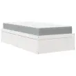 Ta postelja preproste in brezčasne oblike bo resnično praktičen in dekorativen dodatek za vašo spalnico. Trdna borovina: Trdna borovina je čudovit naravni material. Borovina ima ravne vzorce, grče pa dajejo materialu njegov značilen, rustikalen videz.Trpežno blago: Blago zagotavlja preprost in čist videz, poleg tega pa je zračno in trpežno.Ležišče z žepkastimi vzmetmi: Ta vzmetnica z žepkastimi vzmetmi ima posamezne žepkaste vzmeti, ki delujejo neodvisno in zagotavljajo prilagojeno podporo, saj se odzivajo le na pritisk na posameznem območju. Takšna zasnova preprečuje, da bi se ležišče "zvijalo skupaj", in zmanjšuje prenos gibanja v primerjavi s tradicionalnimi ležišči z odprtimi vzmetmi. Vsaka žepkasta vzmet podpira telo posebej.Letvice za optimalno podporo: Okvir postelje je opremljen z letvicami, ki zagotavljajo osnovno podporo in zračnost vašega ležišča. Dobro je vedeti:Zaradi higienskih razlogov vzmetnice ni mogoče vrniti po odstranitvi ali odprtju embalaže.Potrebno sestavljanje: DaPosteljni okvir:Barva: BelaMaterial: Trdna borovinaDimenzije: 206,5 x 96,5 x 37 cm (D x Š x V)Vzmetnica:Barva: Bela in svetlo sivaMaterial prevleke: Tkanina (100 % poliester)Material polnila: Žepkaste vzmeti, penaTrdnost: SrednjaDimenzije: 90 x 200 x 20 cm (Š x D x V) Paket vsebuje:1 x Posteljni okvir1 x Vzmetnica 3281944