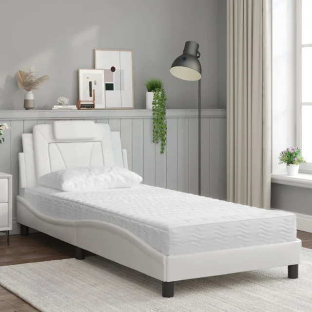 vidaXL Postelja z vzmetnico bela 90x190 cm umetno usnje