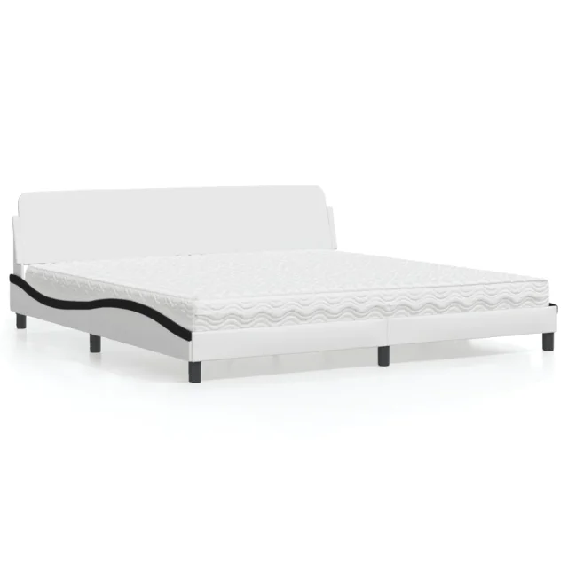 vidaXL Postelja z vzmetnico bela in črna 200x200 cm umetno usnje