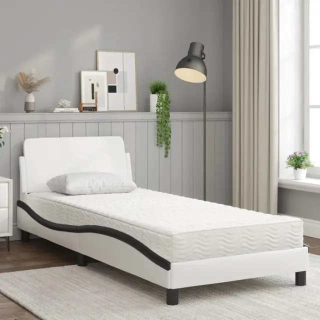 vidaXL Postelja z vzmetnico bela in črna 80x200 cm umetno usnje