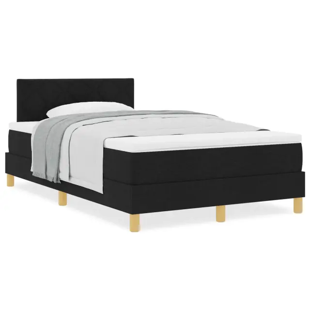 Ta postelja z vzmetnico združuje moderen slog in praktičnost, kar jo naredi idealno za sproščujoč kotiček v spalnici. Obkrožena s stilno črno tkanino, ki se prilega vsakemu dekorju, je perfektna za odrasle, ki želijo stil in udobje v svojem prostoru.